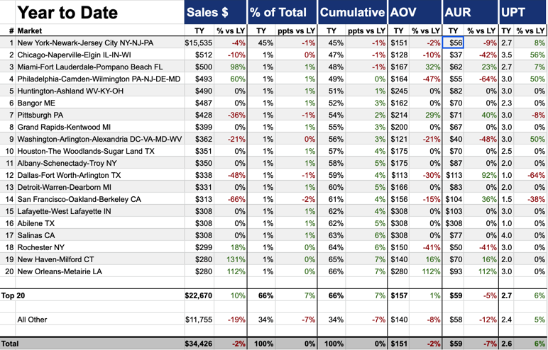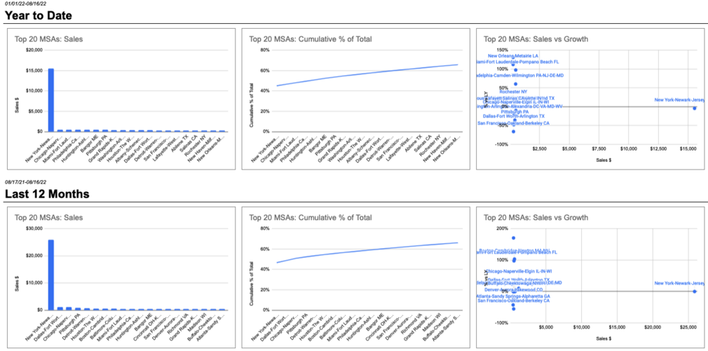 If you're a consumer business then you know how important it is to monitor your sales, customers, and metrics that identify where you have growth potential or challenges. This dashboard takes a channel-agnostic point of view, giving you visibility into MSAs rather than traditional channel outputs.